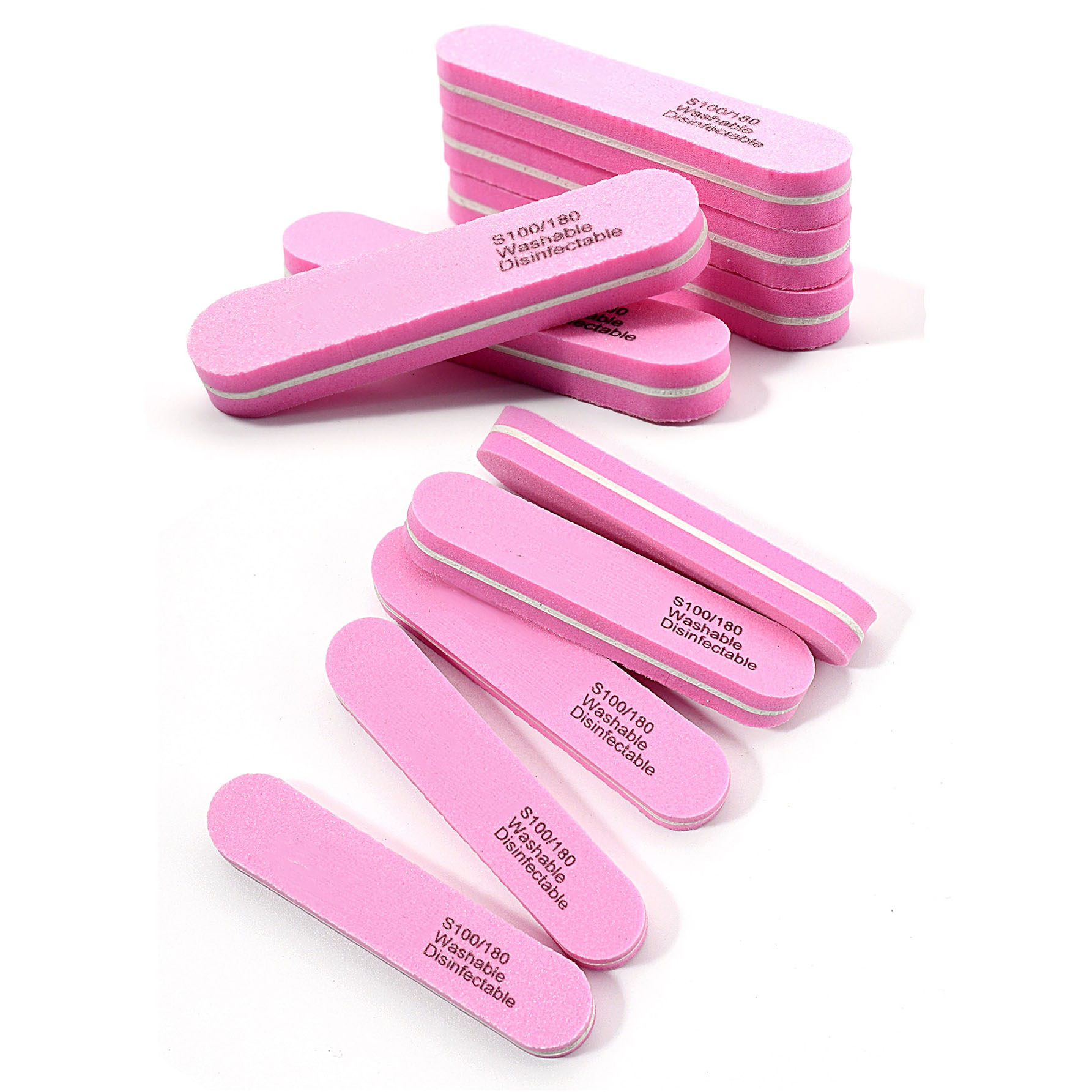 مُبْرِد أظافر إسفنجي بلوك 100/180 مزدوج الجهتين – وردي، قابل للغسل وإعادة الاستخدام لمانيكير وباديكير الصالون والمنزل | متوسط الحجم | 5 قطع