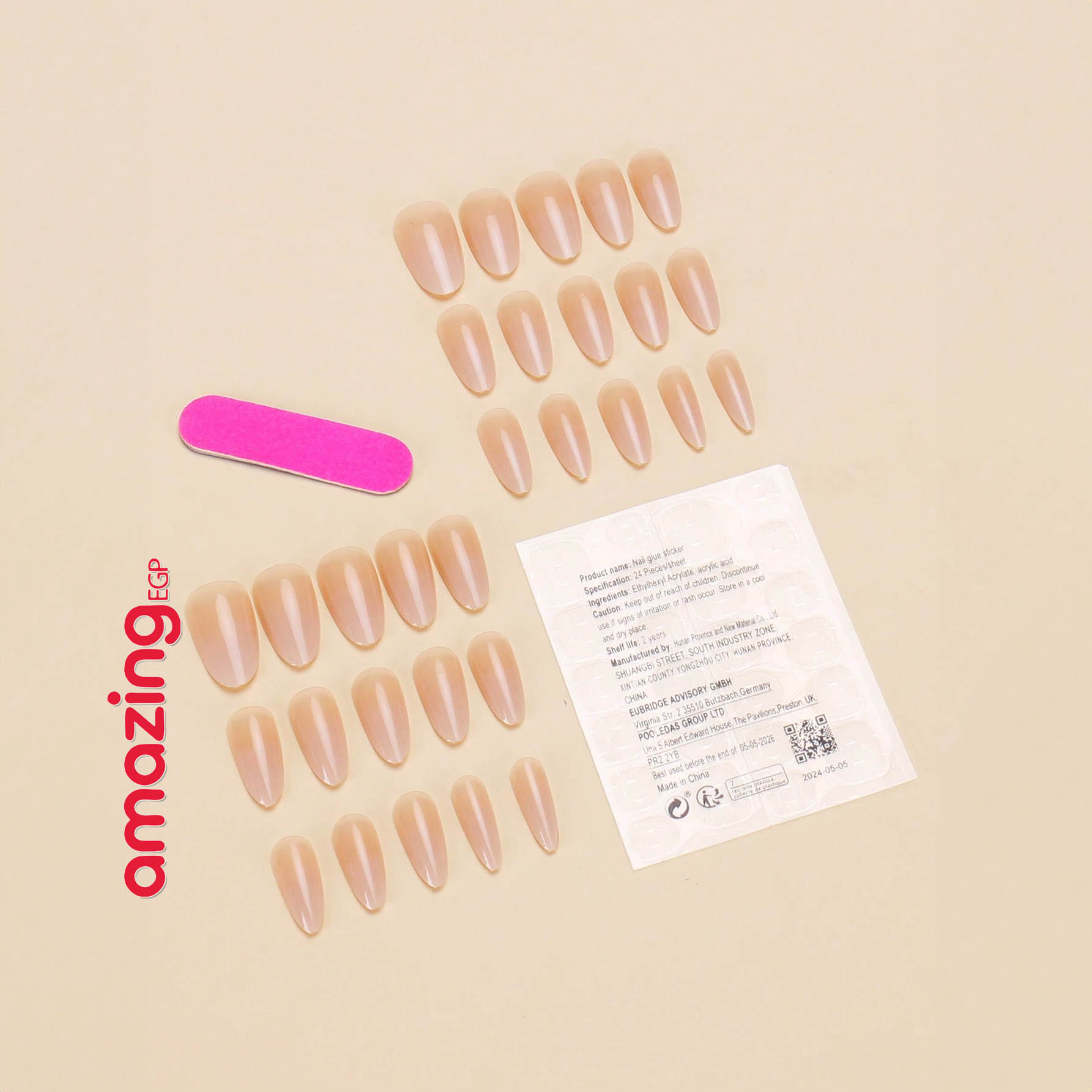 - ✅ 30 × ظفر صناعي لاصق (ألوان تدرّج طبيعي، مقاسات متعددة)