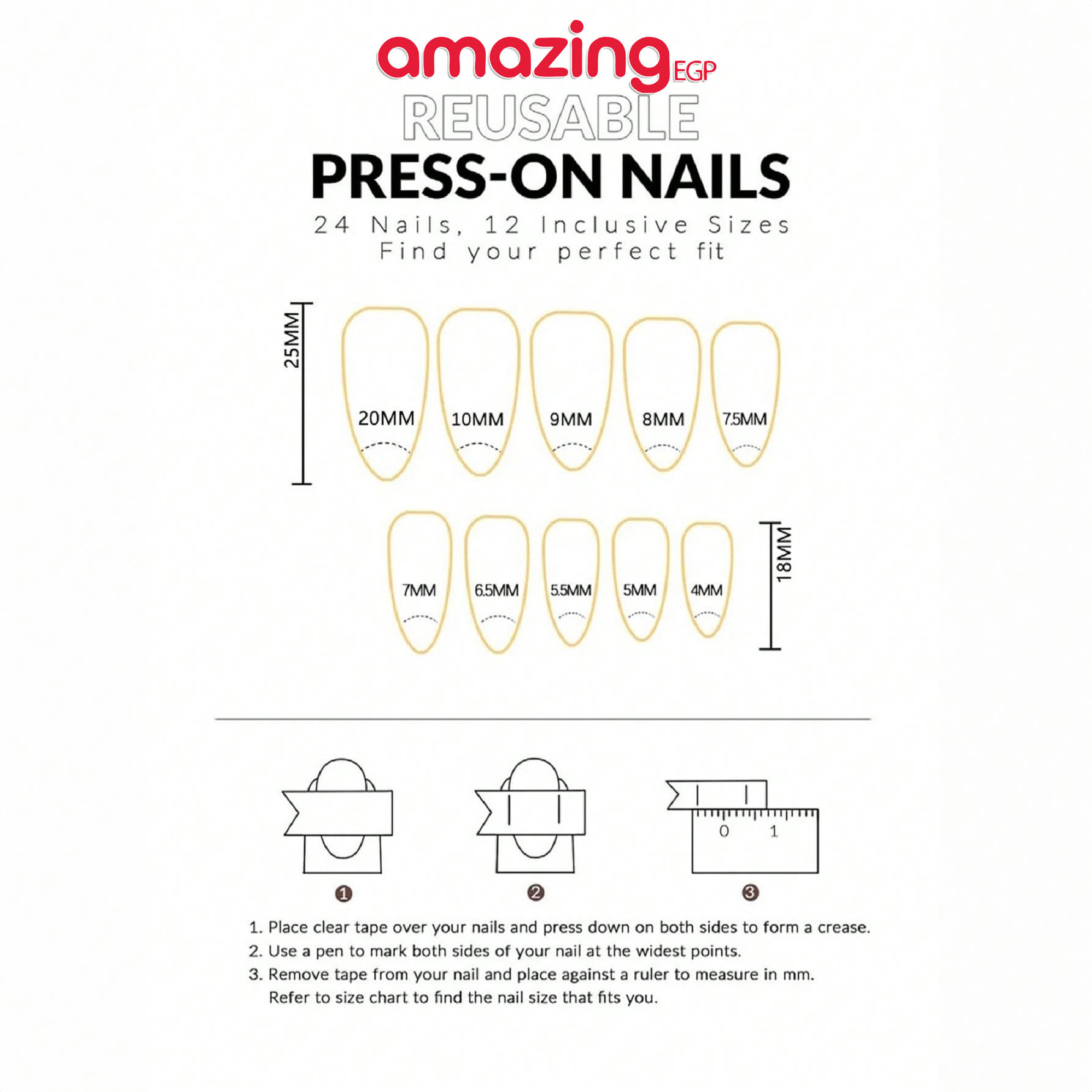 - اختاري المقاس المناسب لكل ظفر.