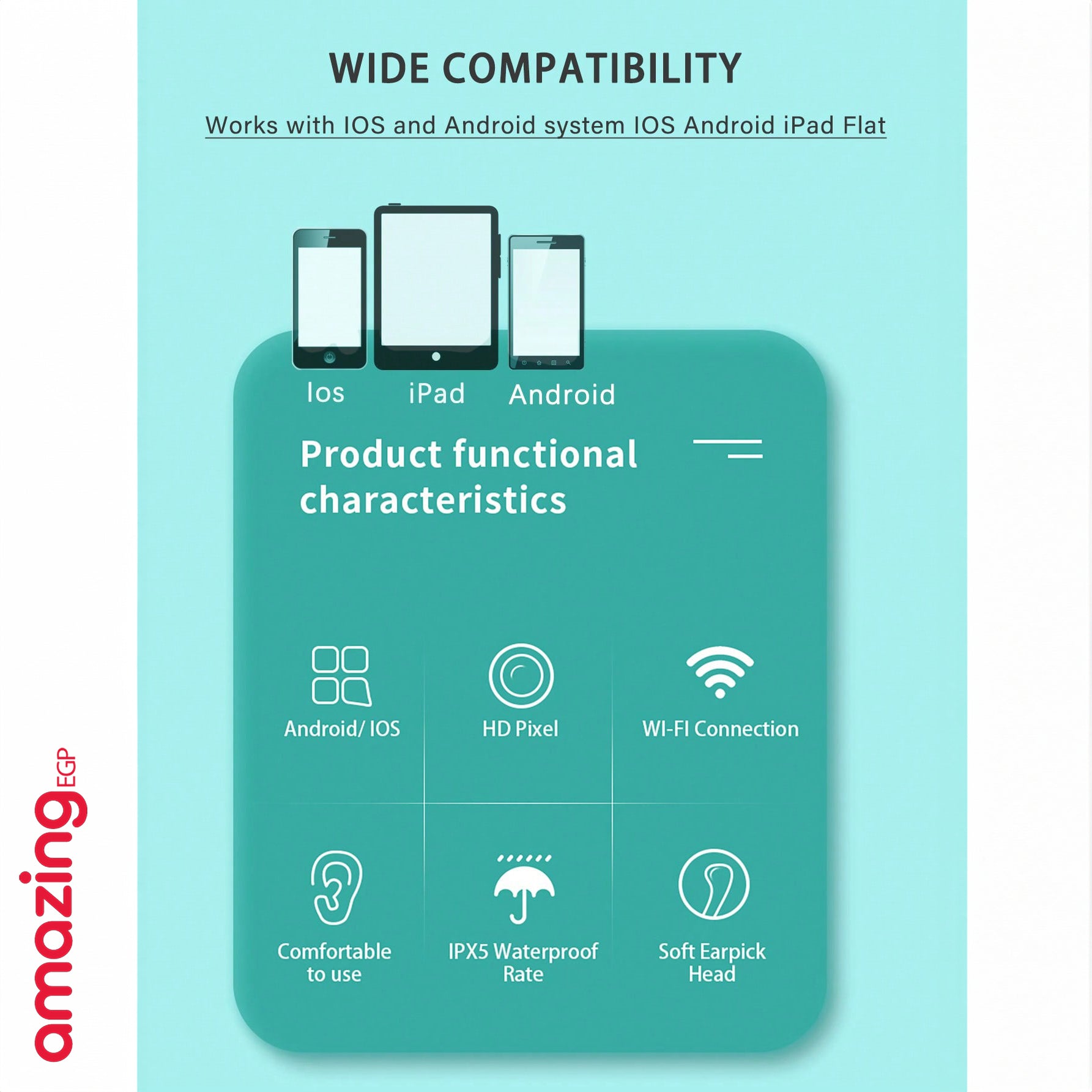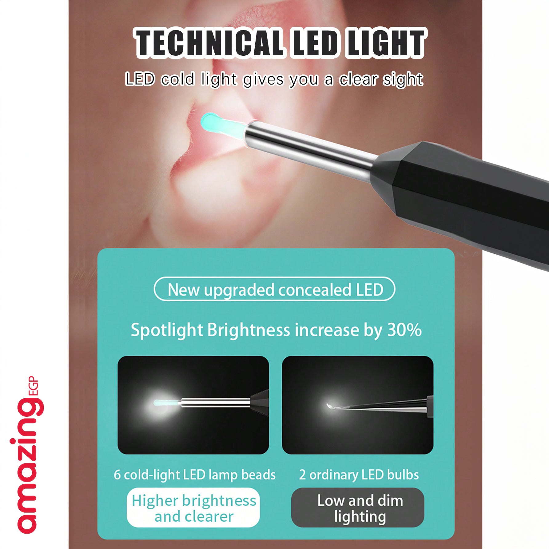 احصل على تجربة تنظيف آمنة واحترافية مع أداة إزالة شمع الأذن المدمجة بكاميرا عالية الدقة 1080P و6 أضواء LED تمنحك رؤية واضحة أثناء التنظيف.