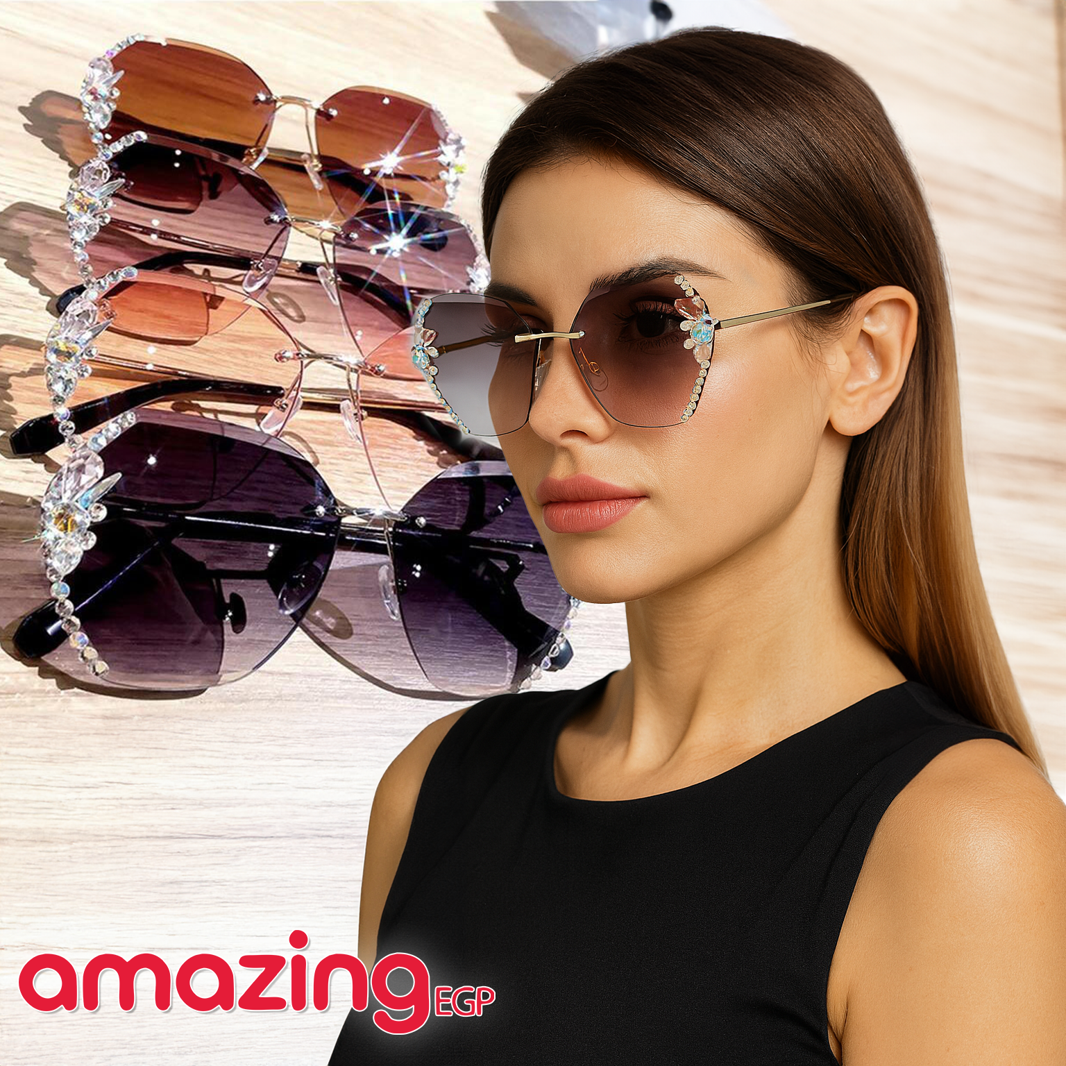 تأتي بإطار أنيق مزين بأحجار الراين التي تضفي لمسة من الفخامة والجاذبية، مما يجعلها الإكسسوار المثالي لإكمال إطلالتك الصيفية وإبراز جمالك في أي مناسبة.