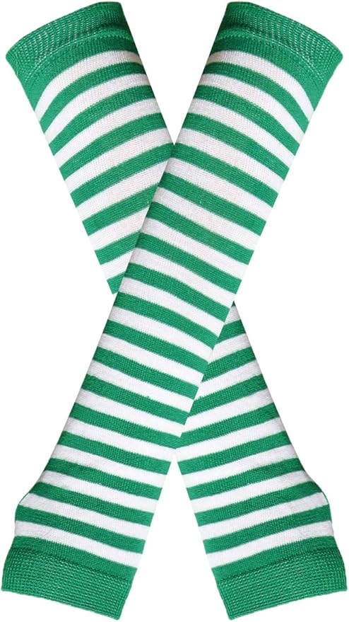 🧤 قفازات شتوية طويلة بدون أصابع بنمط بانك عتيق – تصميم مخطط أنيق باللون الابيض مخطط أخضر للنساء والفتيات