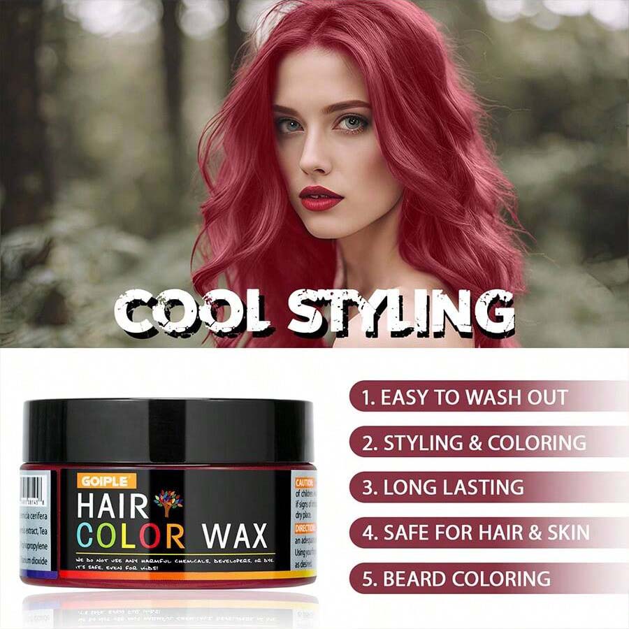 غيّر إطلالتك في ثوانٍ مع شمع الشعر المؤقت من GOIPLE بلونه الأحمر الغامق الجذاب! 🌶️ هذا الكريم متعدد الاستخدامات مصمم لمنح شعرك مظهرًا جريئًا دون التزام دائم – سواء كنت تحضّر لحفل، تنكر، جلسة تصوير أو حتى تغيير مظهرك اليومي بكل حرية!
