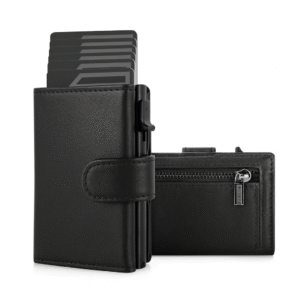 حافظ على بطاقاتك منظمة وآمنة مع محفظة البطاقات الجلدية المنبثقة، بآلية Pop-Up للوصول السريع، وجيب عملات معدنية، وتقنية حجب RFID لحماية بياناتك.