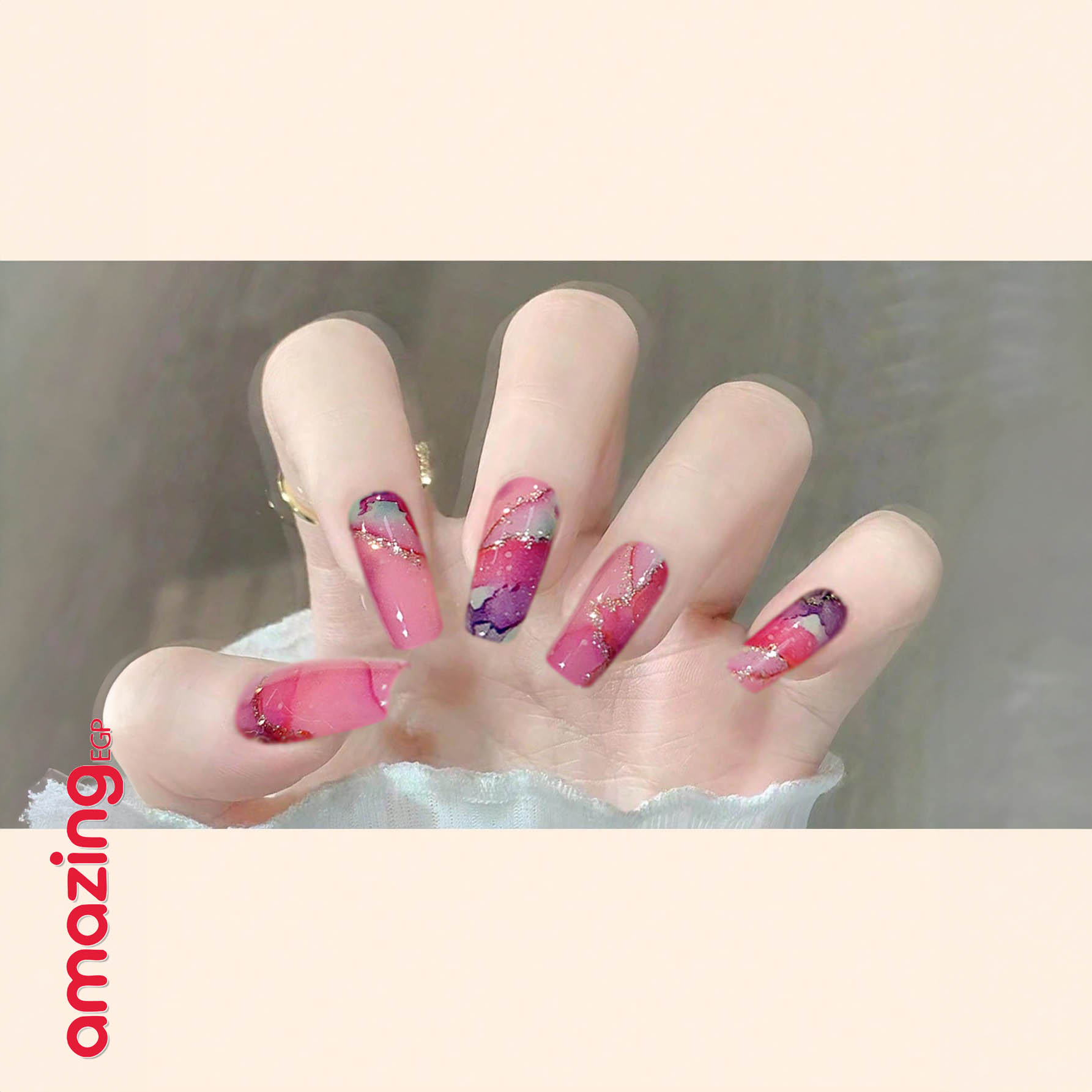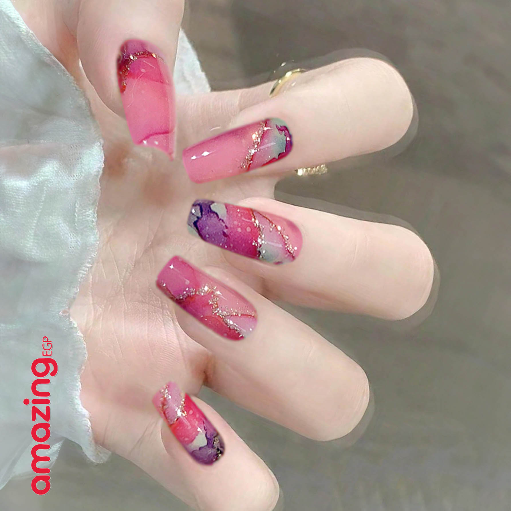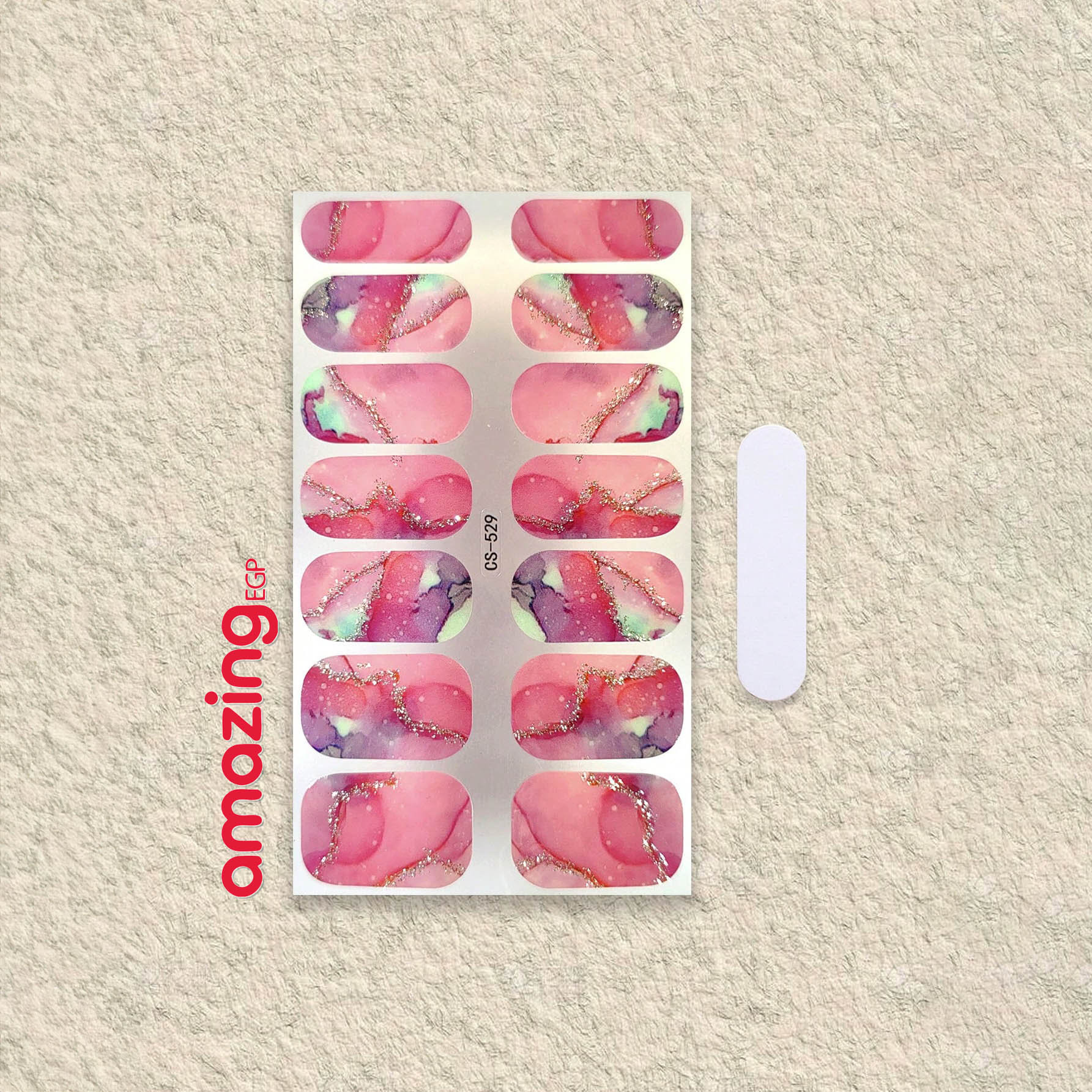 احصلي على شكل جل أنيق دون فوضى الطلاء التقليدي. شرائط ذاتية اللصق بتصميم رخامي وردي/أحمر مع لمعة رقيقة تمنحك لمسة عصرية تدوم.