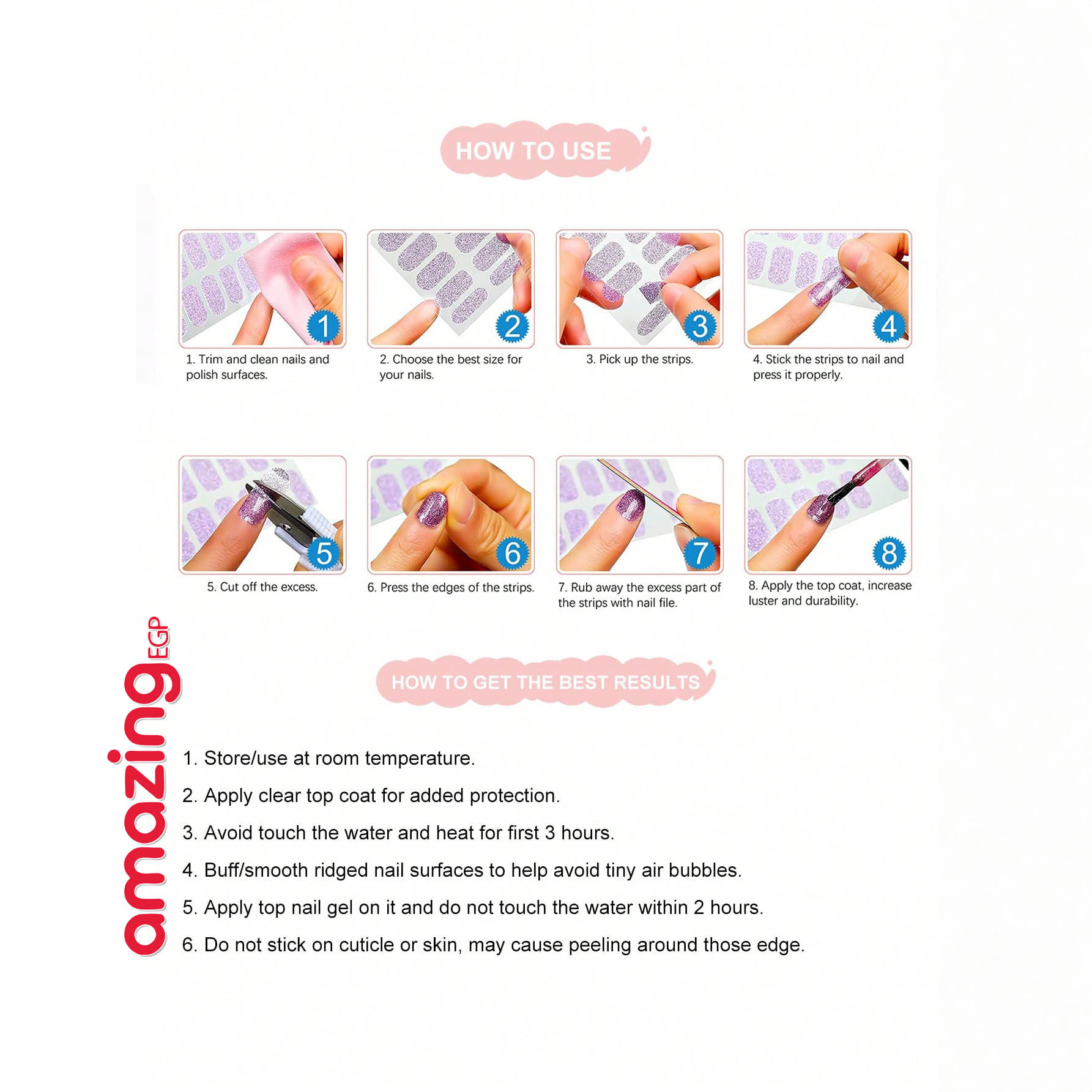 • 🧲 تركيب سهل بدون UV—قشّري، ثبّتي، قصّي الزائد ثم ابردي الأطراف.