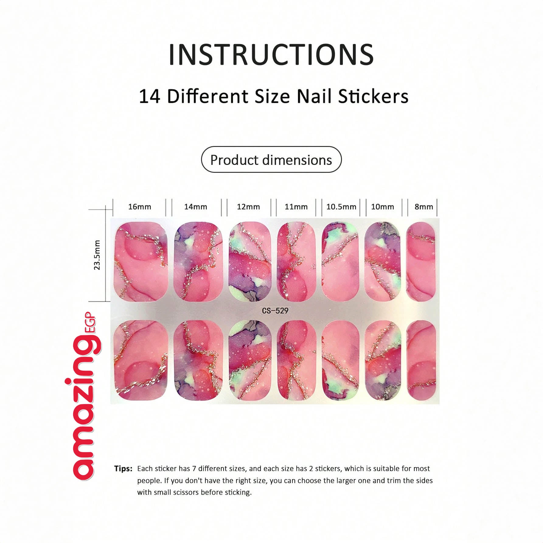 ملصقات مناكير كاملة الالتفاف – شريط أظافر ذاتي اللصق، مقاوم للماء وطويل الثبات، تصميم صيفي عصري لتزيين الأظافر CS-529 (شيت واحد)