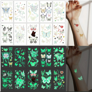 حوّل حفلة الطفل أو المناسبة المدرسية إلى مغامرة ما قبل التاريخ! 🦕💫 مجموعة وشوم فراشات مضيئة تُظهر ألوانًا زاهية نهارًا وتتوهّج ليلًا بعد تعرّضها للضوء. مناسبة للأطفال والكبار (مع إشراف)، سهلة التركيب والإزالة بلا فوضى.