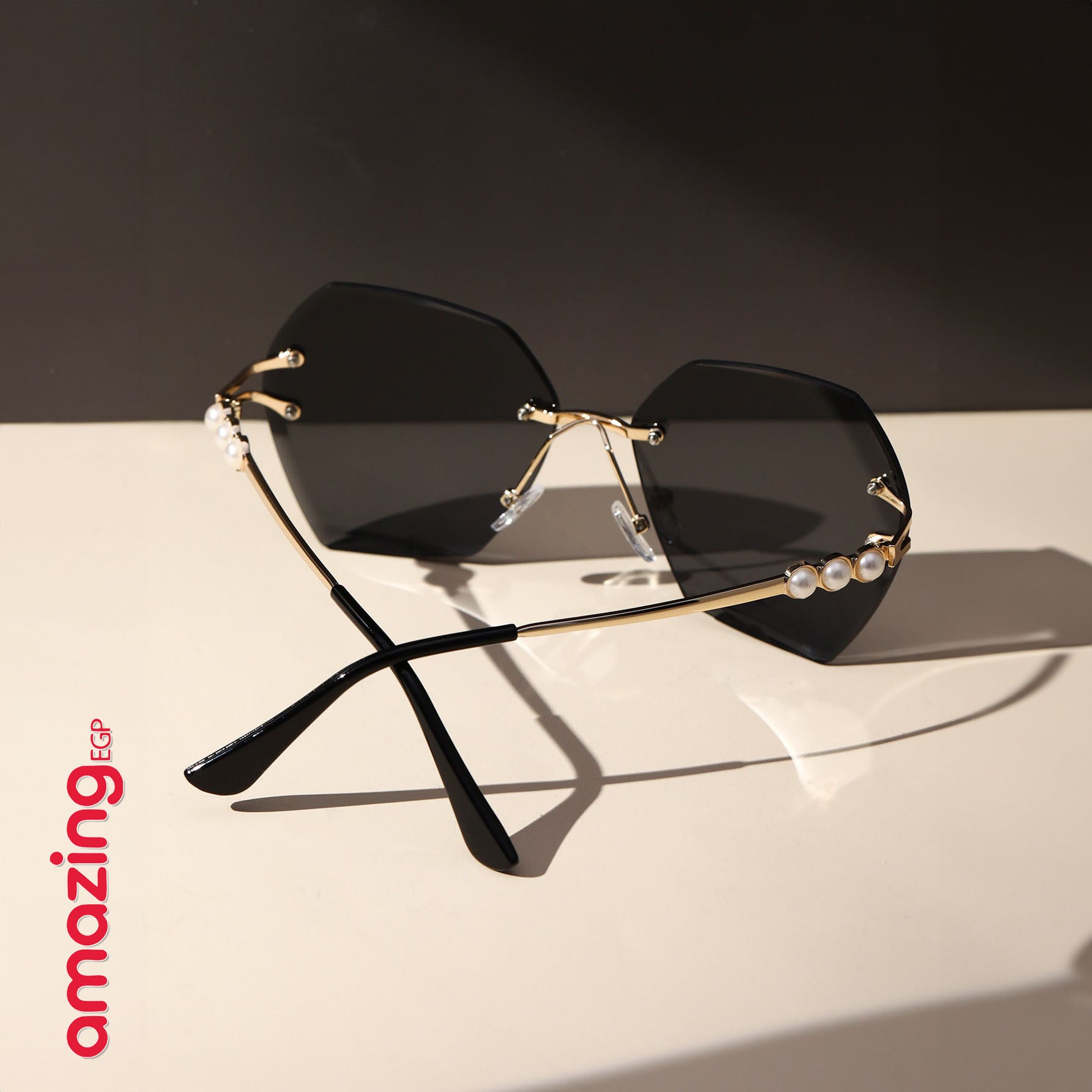 ١ × نظارة شمسية مضلّعة بدون إطار مزينة باللؤلؤ.