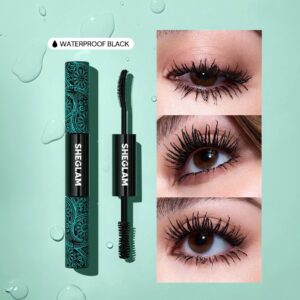 SHEGLAM ماسكارا All-In-One ماسكارا مقاومة للماء بلون برغندي، تضيف كثافة وطول للرموش، مقاومة للتلطخ والتقشير، مثالية للعيد، الشتاء، السفر والمكياج اليومي – الأسود