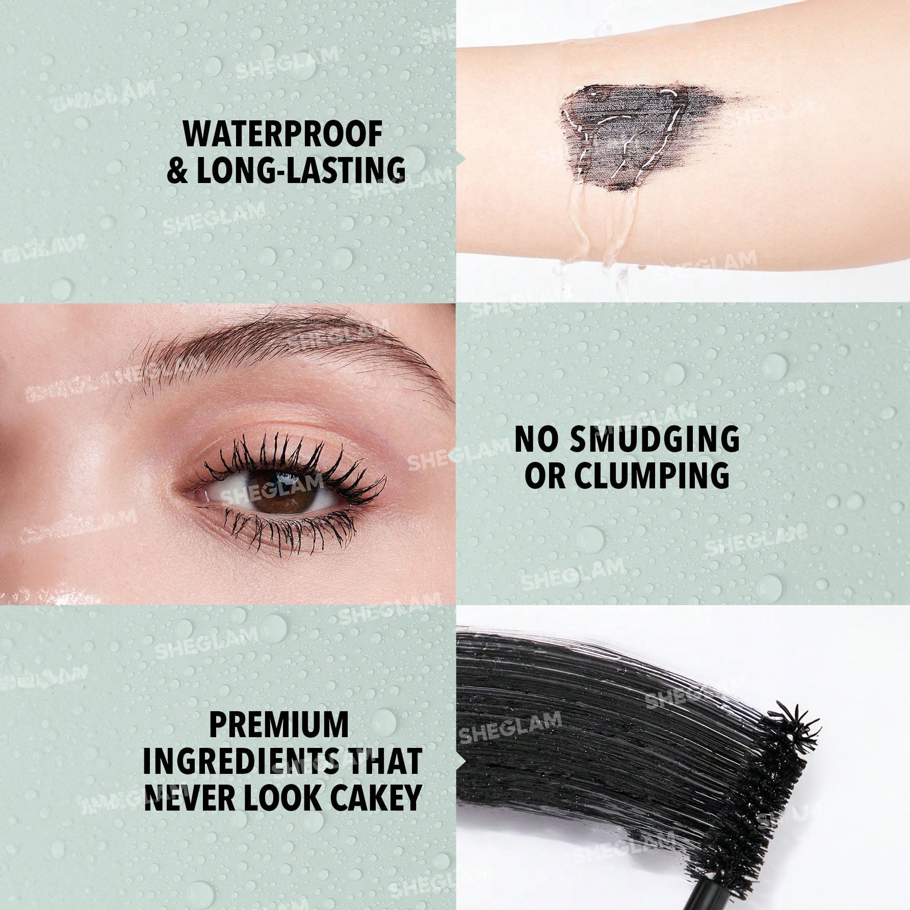 • تمنحك ماسكارا SHEGLAM رموشًا جريئة وساحرة بتأثير مروحة رائع.